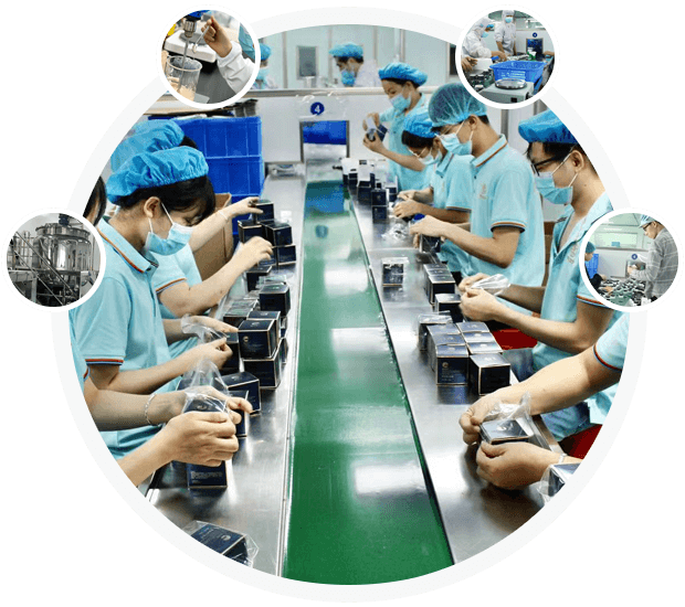廣東粵妝生物科技有限公司位于自然資源豐富,交通便利的廣州市白云區南嶺工業區內,占地面積約15000平方,注冊資金為500萬,目前在職員工100多名。工廠成立以來發展迅速,業務不斷發展壯大。是一家集原料、研發、產品設計、OEM加工研發的新型生產企業。